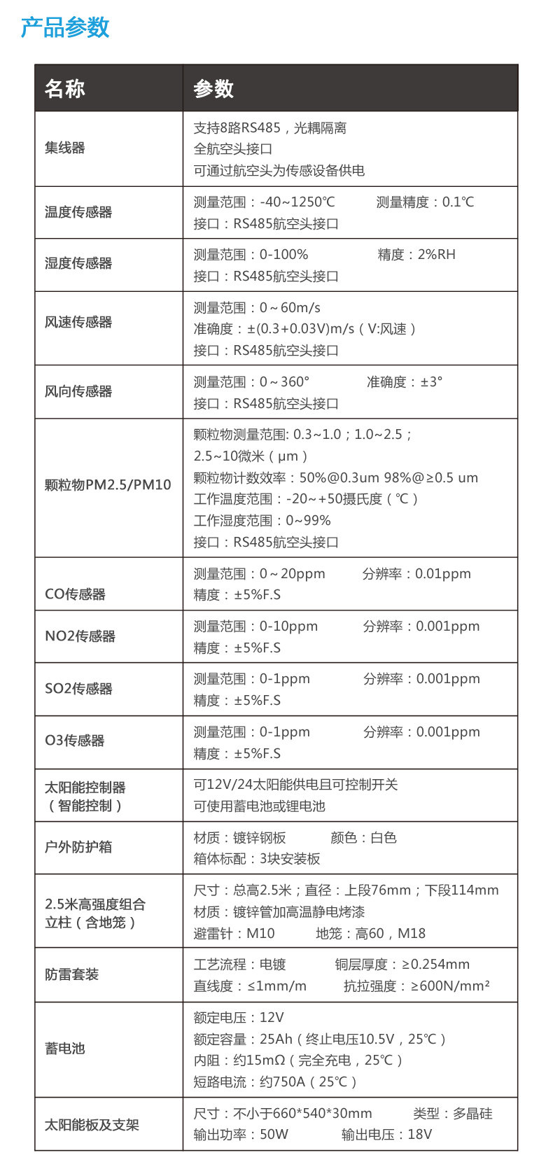 产品参数